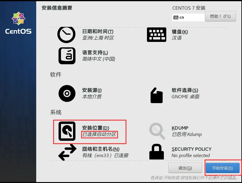 然后点一下安装位置,选择自动分区,再回来就可以点“开始安装”了。