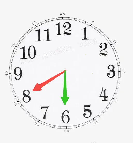 以此图为例,如果指针目前指向8(红色指针),要把它拨到6(绿色指针),有两种方式: