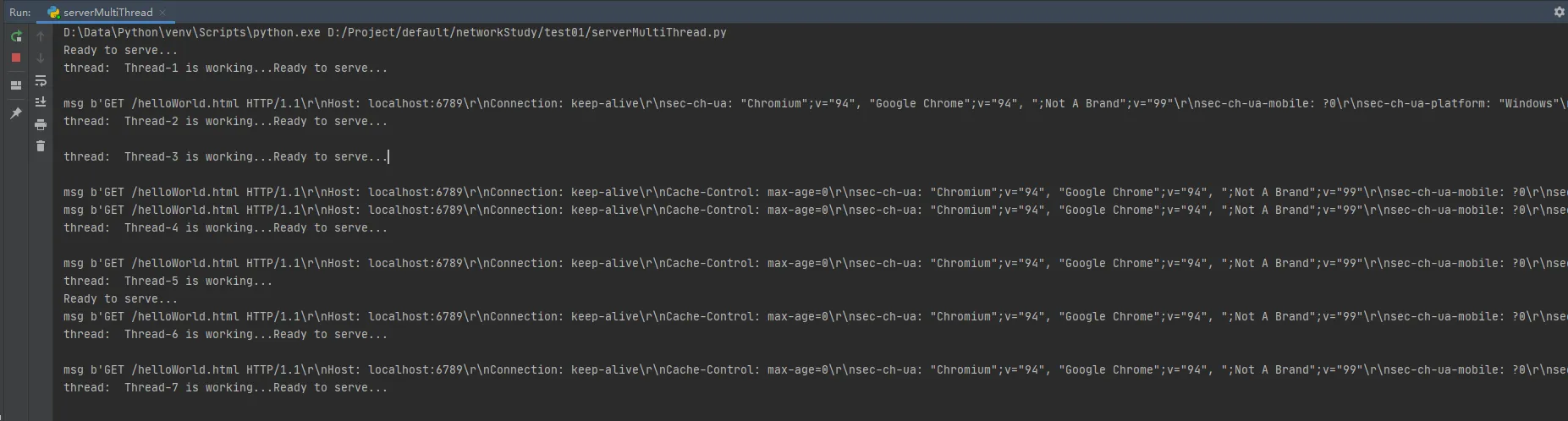 题目:目前,这个Web服务器一次只处理一个HTTP请求。请实现一个能够同时处理多个请求的多线程服务器。使用线程,首先创建一个主线程,在固定端口监听客户端请求。当从客户端收到TCP连接请求时,它将通过另一个端口建立TCP连接,并在另外的单独线程中为客户端请求提供服务。这样在每个请求/响应对的独立线程中将有一个独立的TCP连接。