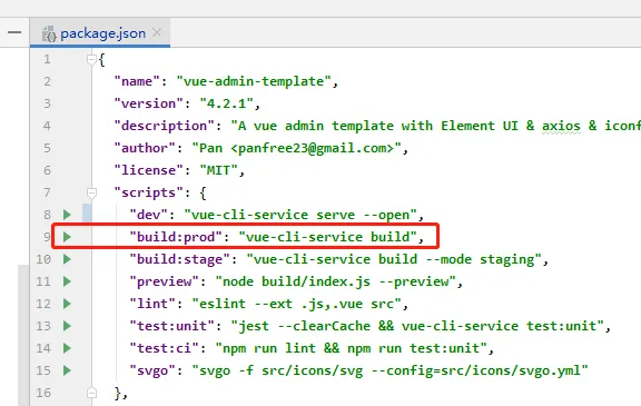 根据该项目package.json内所设置的,使用npm run build:prod打包,生成dist文件夹